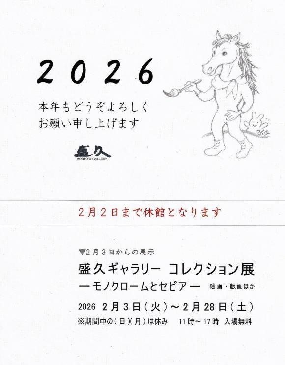 盛久ギャラリーでは、年に数回 館蔵品展などの自主企画展を予定しますが