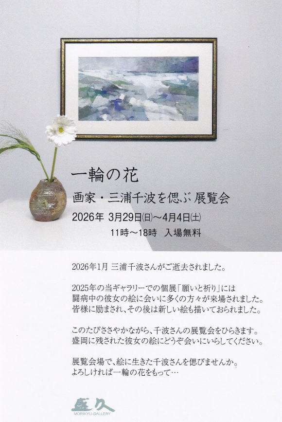 盛久ギャラリーでは、年に数回 館蔵品展などの自主企画展を予定しますが